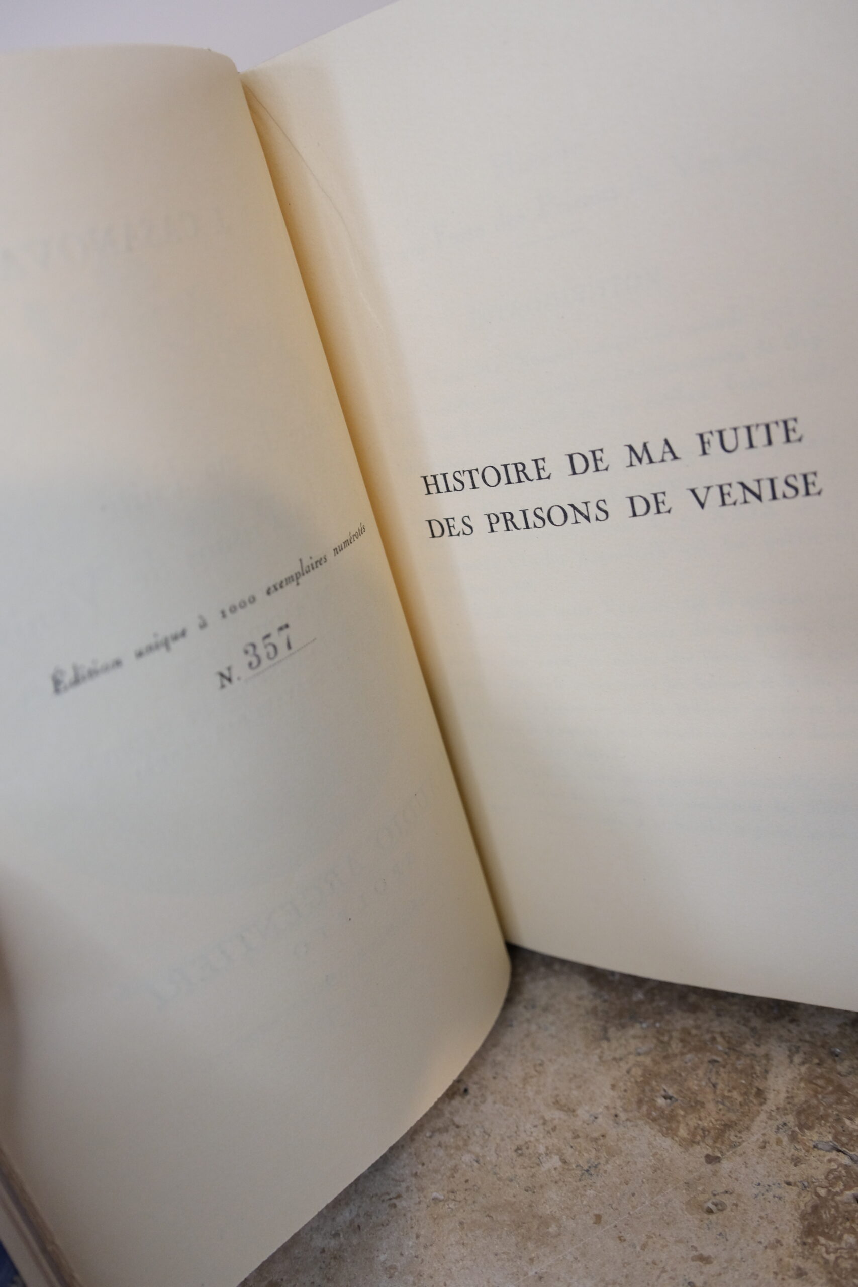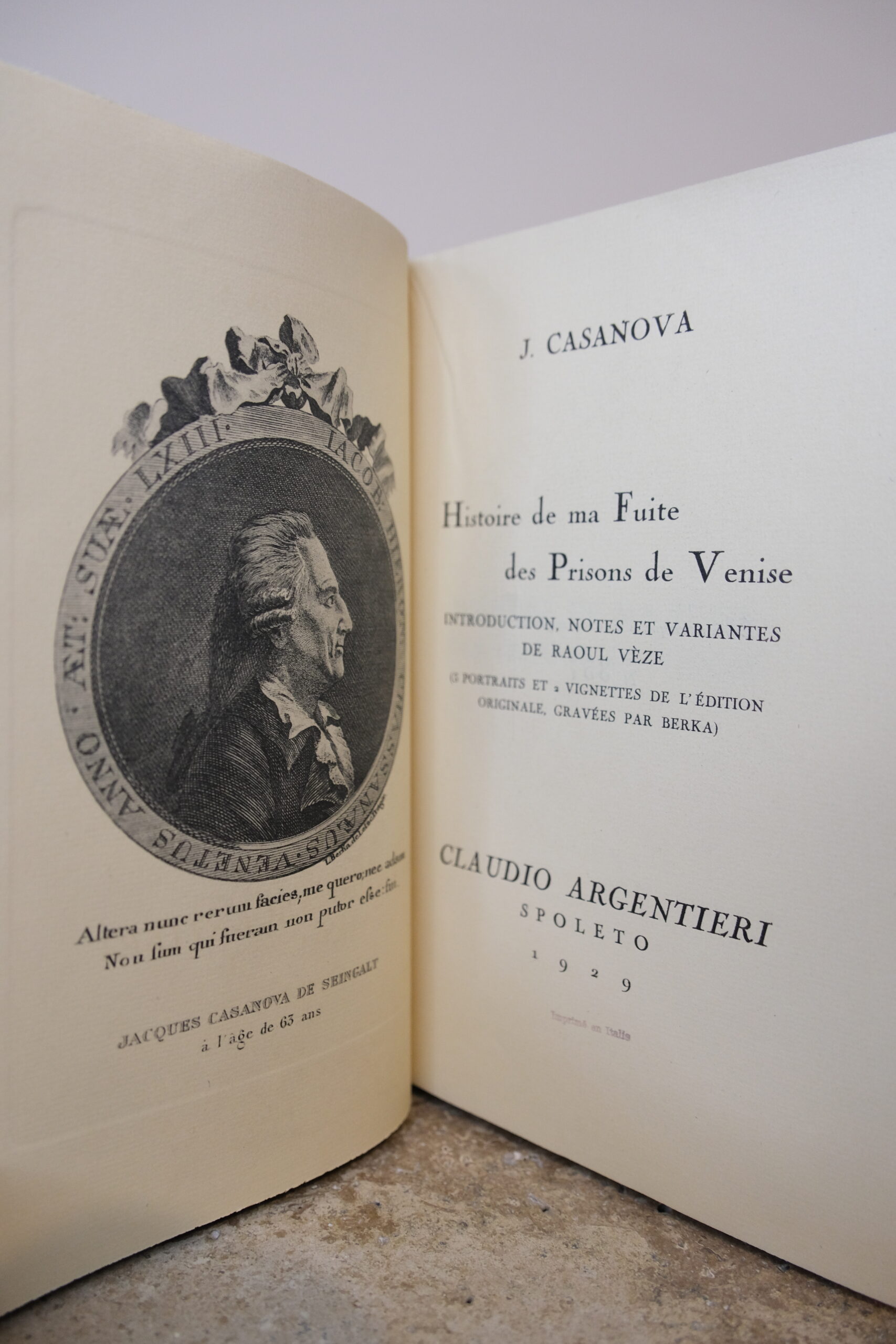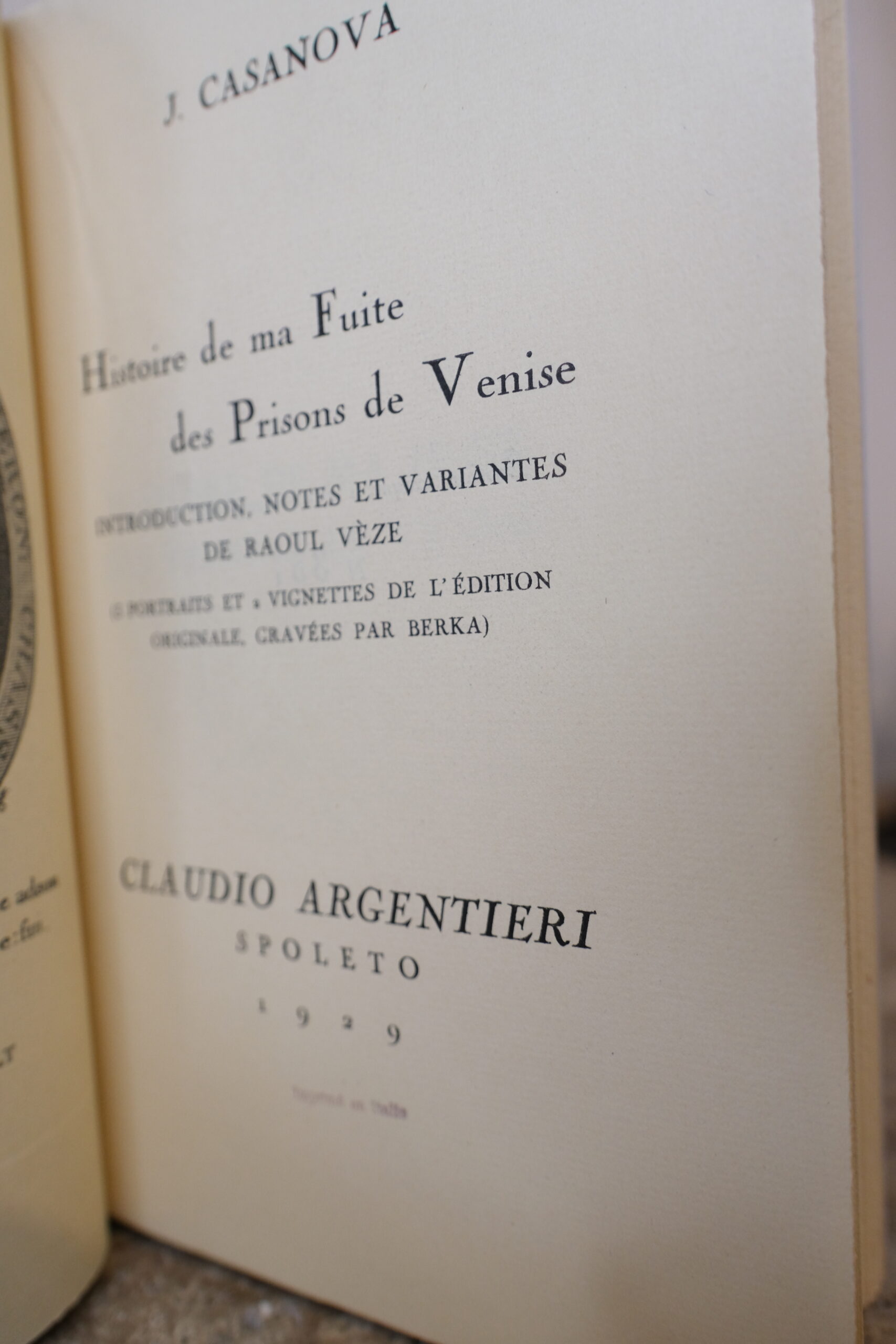 CASANOVA Jacques, Histoire de ma Fuite des Prisons de Venise. Paris, Librairie Gründ, 1929.