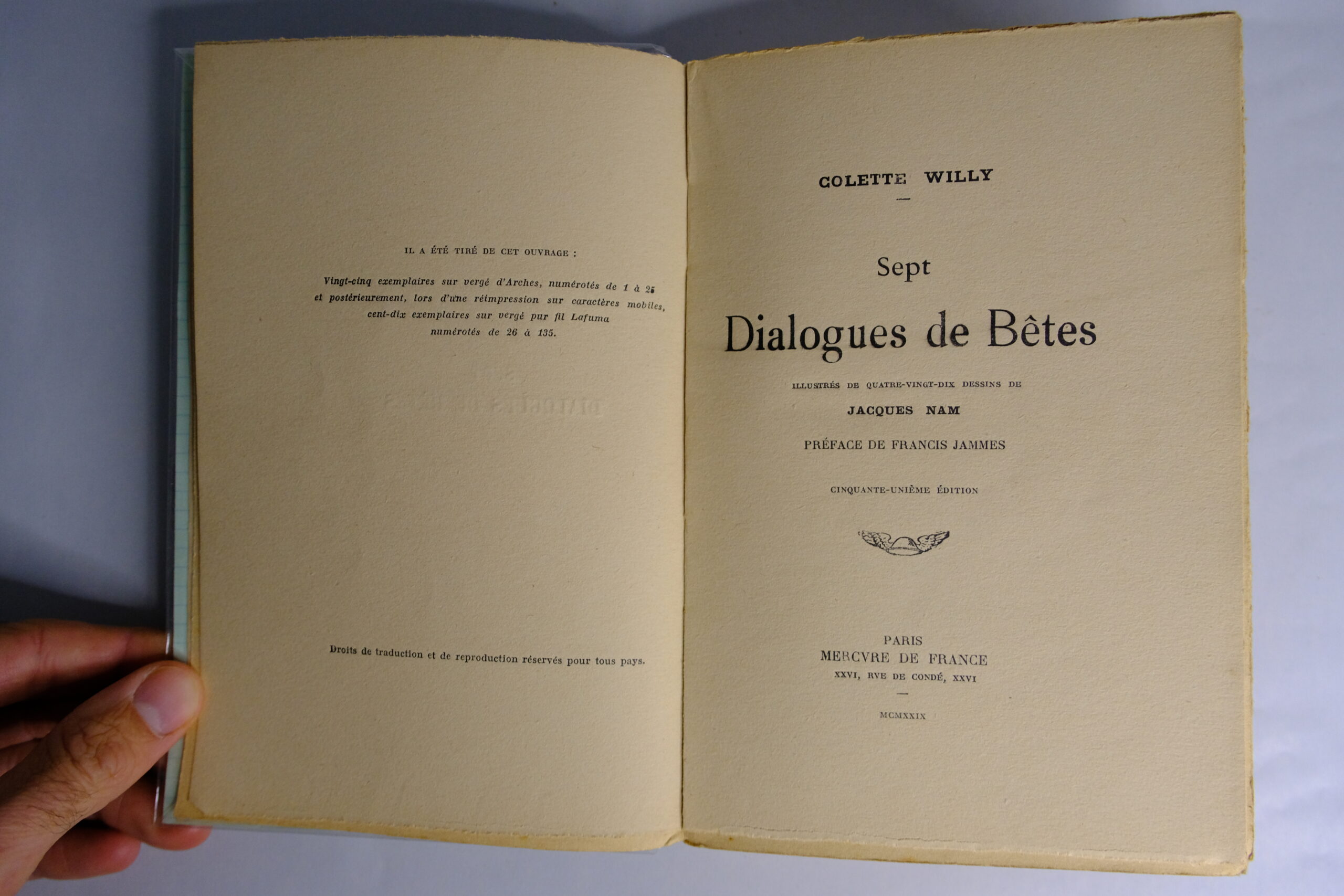 COLETTE, Sept Dialogues de Bêtes. Paris, Mercure de France, 1929.