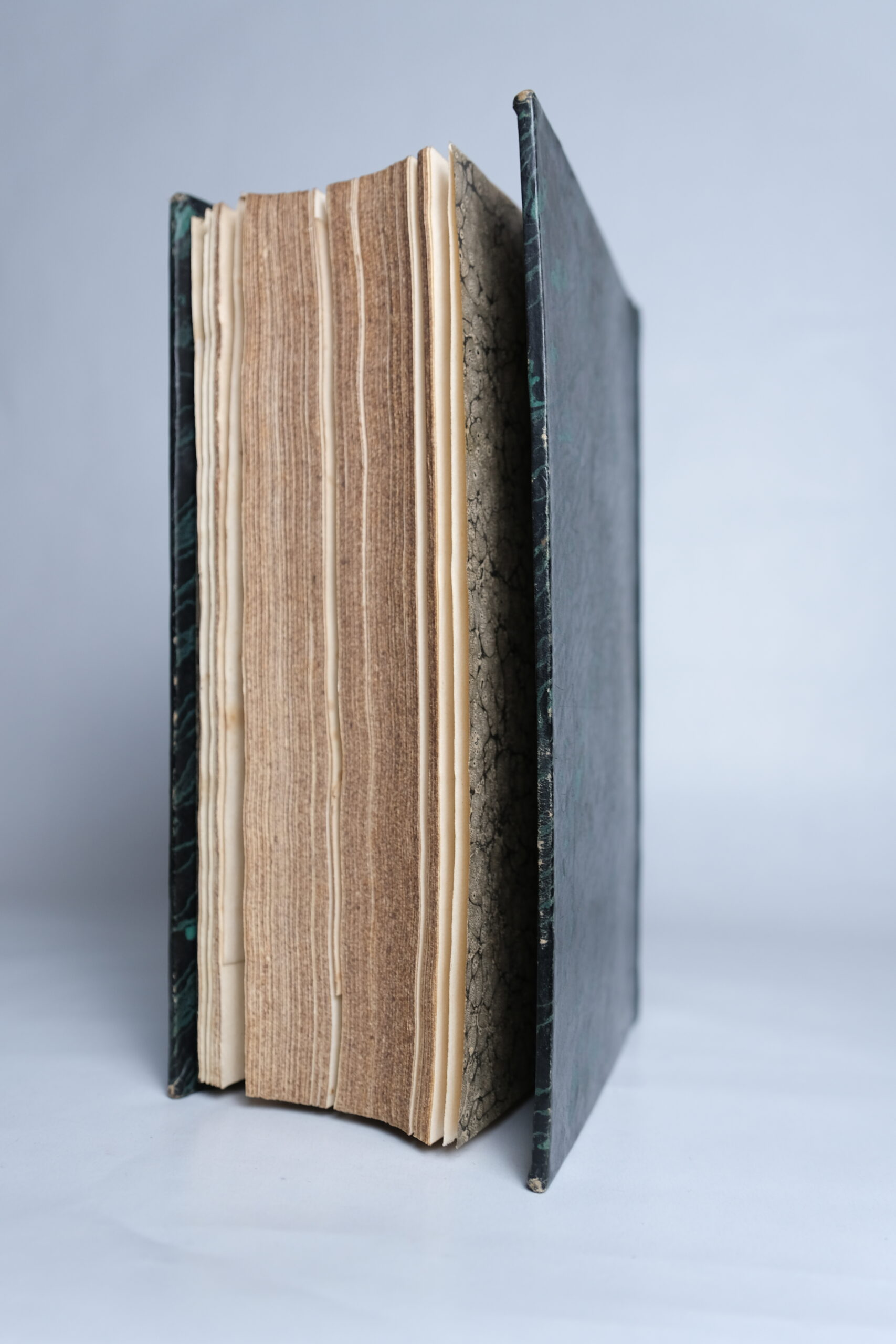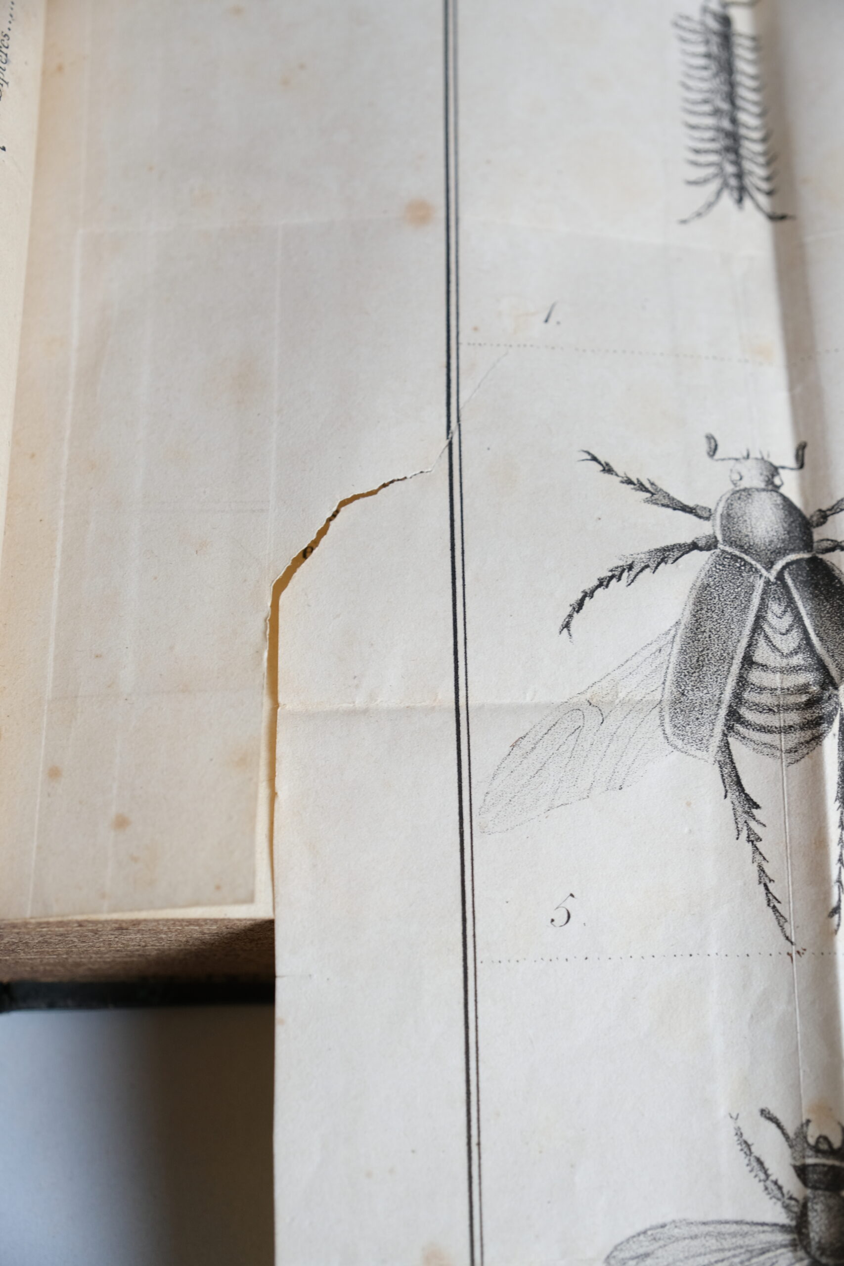 Bonne condition dans l’ensemble, rousseurs et mouillures éparses, déchirure sur la planche in-folio (sur une partie vierge qui se prolonge sur l’encadrement)