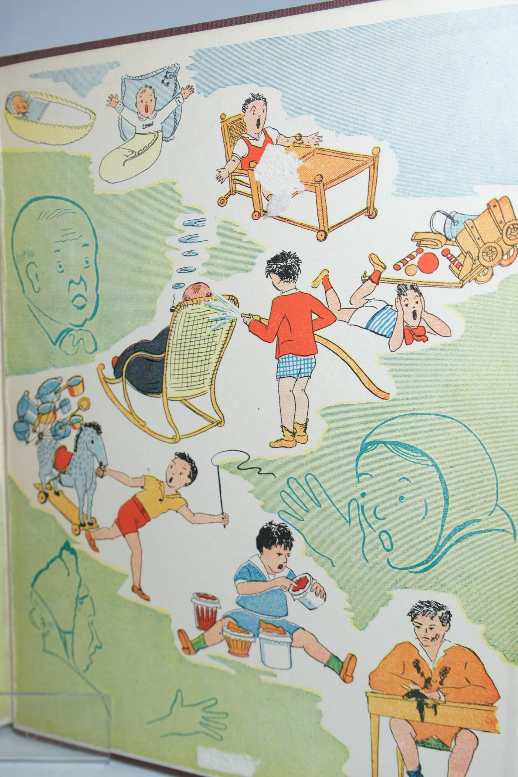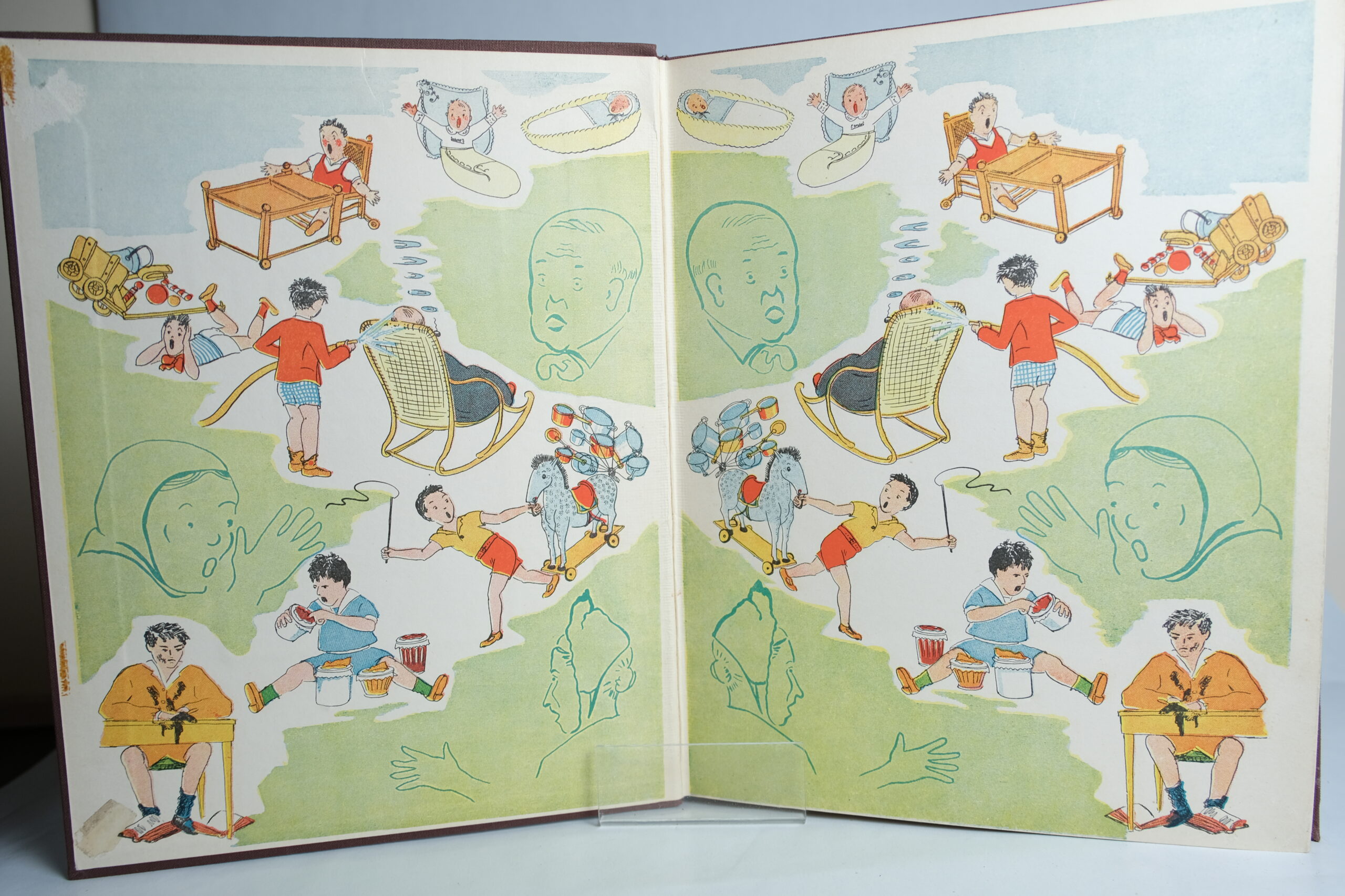 In-4, 21x28cm, relié pleine toile éditeur, gardes illustrées, 76 pp.