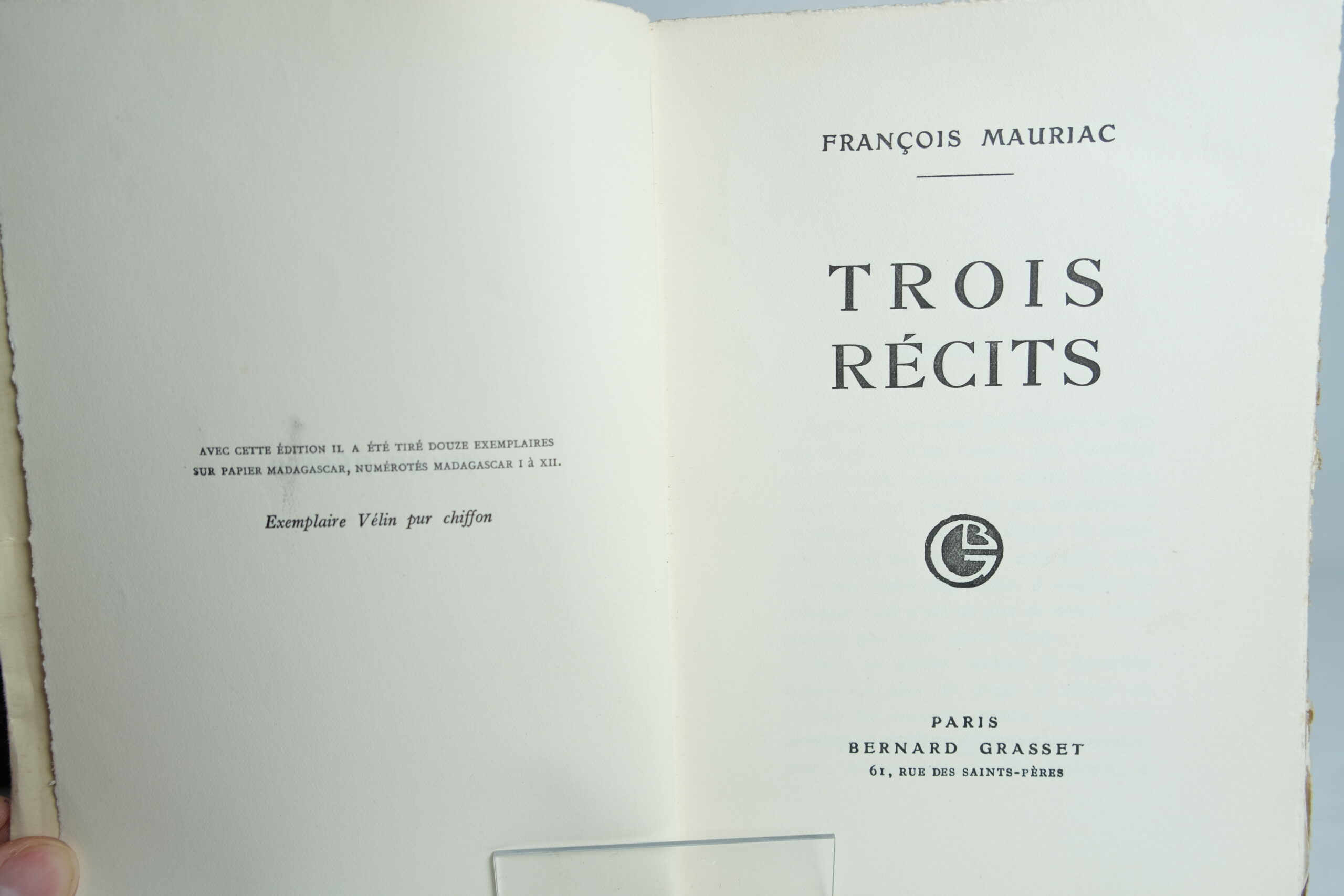 MAURIAC (François), Trois récits. Paris, Grasset, 1929.