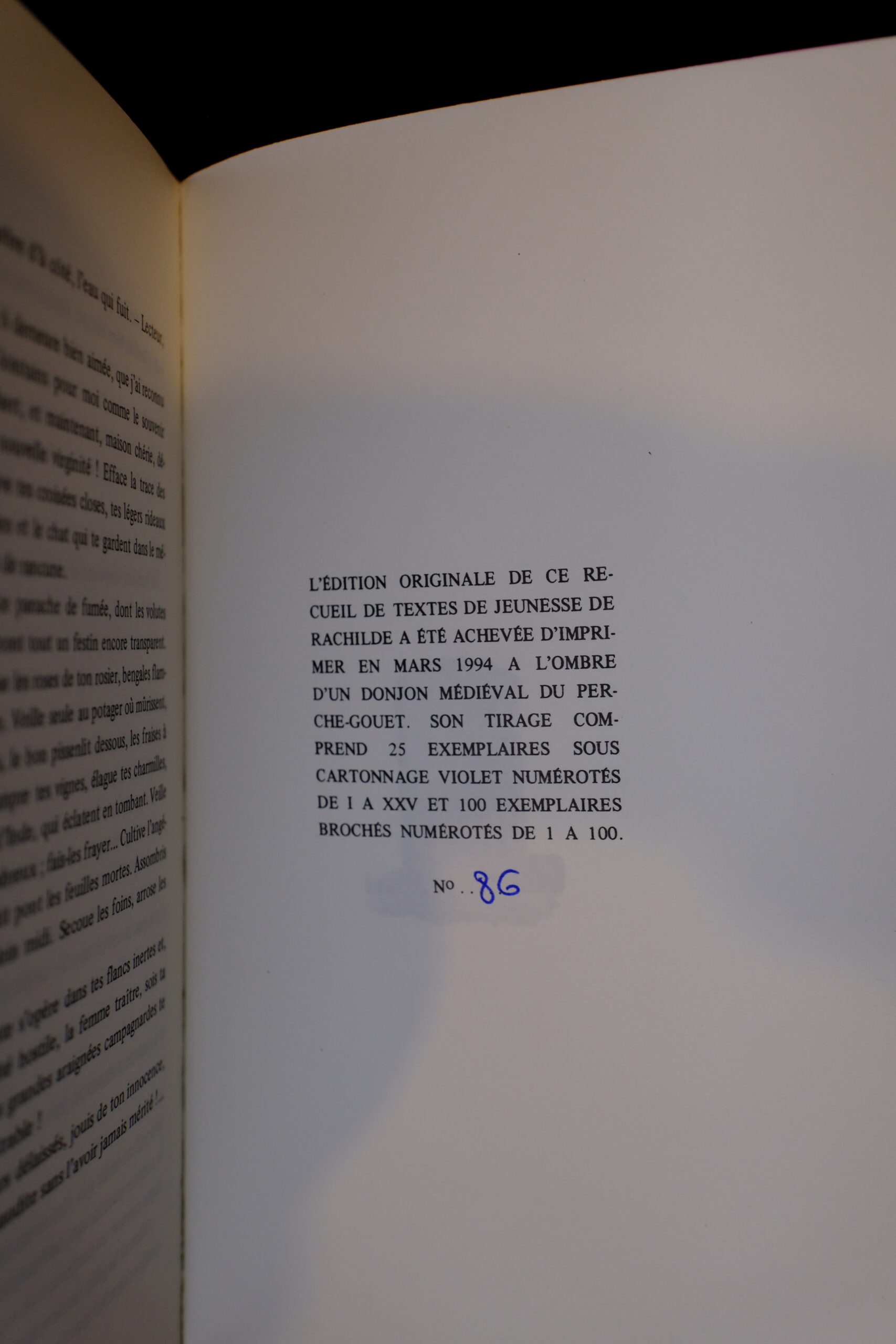 Édition originale numérotée, l’un des 100 brochés, celui-ci n°86.